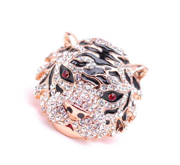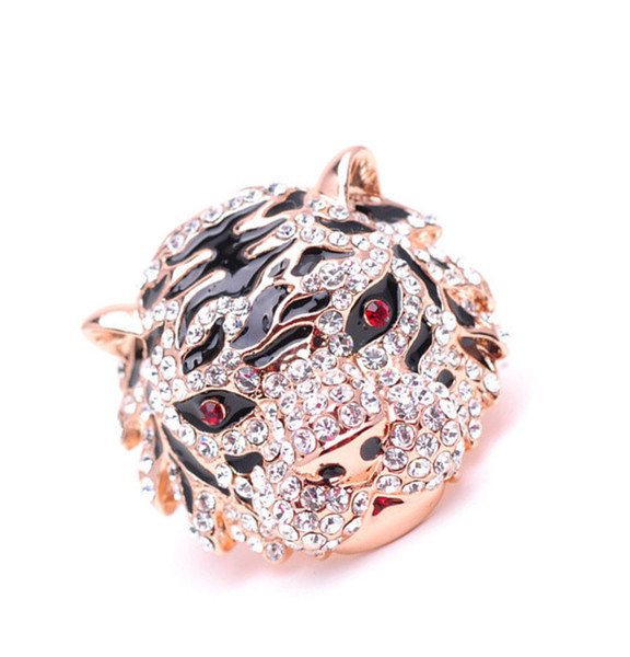 Genuine Tiger head Austrian high-grade crystal diamond ring finge Ring size 8
