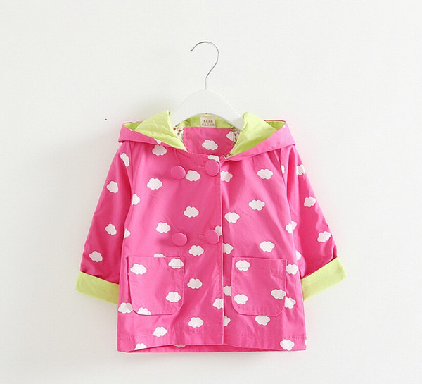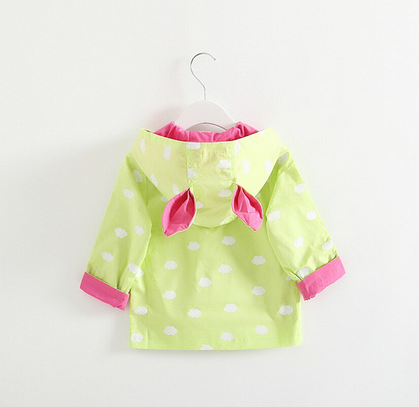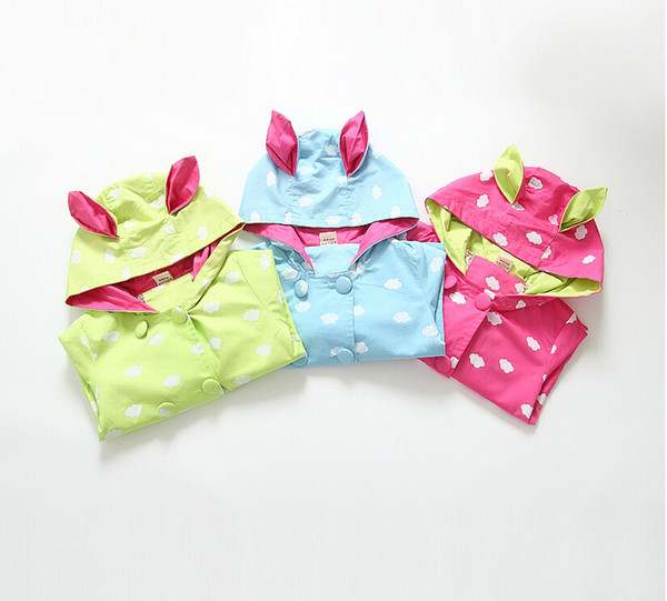 2018 New Girl Coat Children Cloud Printed Dust Coat with Pocket and Bunny Ears Hoodie Kids Clothes