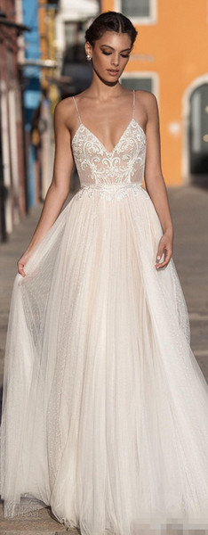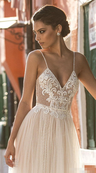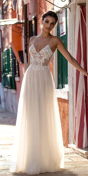 New Sexy Gali Karten Garden Beach Wedding Dresses Sleeveless Spaghetti Straps Robe De Soiree Backless Long Boho Brdial Gowns