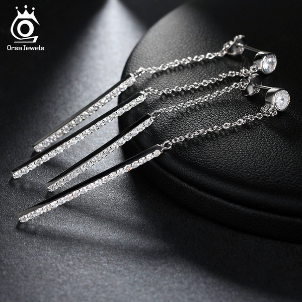 Elegant Platinum Plated Silver Stud Earring Paved with Austrian Cubic Zirconia for Wedding Party Fashion Women Jewelry OE136