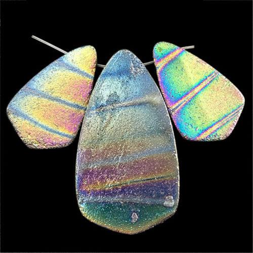 3pcs Plated-color Titanium Druzy Quartz Geode Stone Pendant Bead set SQ2