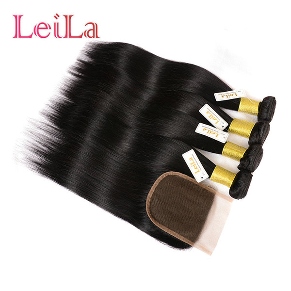 Straight Malaysian Human Hair Bundle with Closure 3Bundles With 4 x 4 Lace Closure Hair Products Free Three Middle part