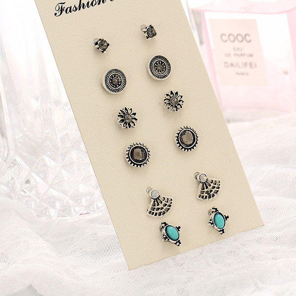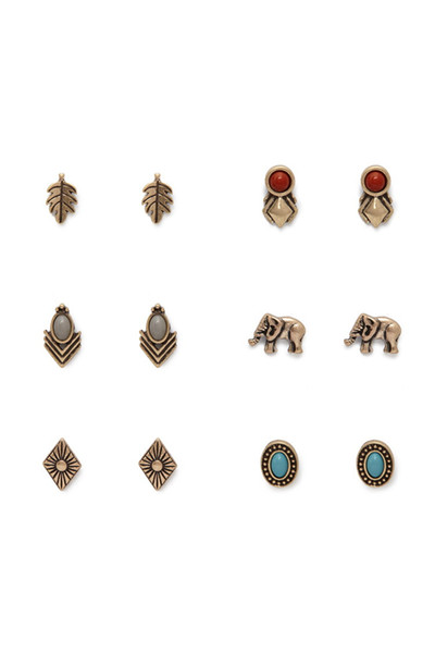idealway Cute Pearl Crystal Elephant Flower Sector Shape Stud For Women Crystal Resin Beads Earrings