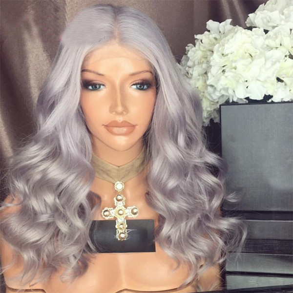 Silver Grey Human Hair Wigs Ombre For Women Glueless Body Wave Virgin Peruvian Silver Grey Full Lace Front Ombre Wig With Baby Hair