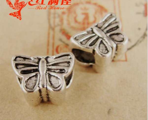 12*8*8MM Antique Bronze Retro butterfly charms big hole beads jewelry accessories DIY material, tibetan silver european metal loose beads