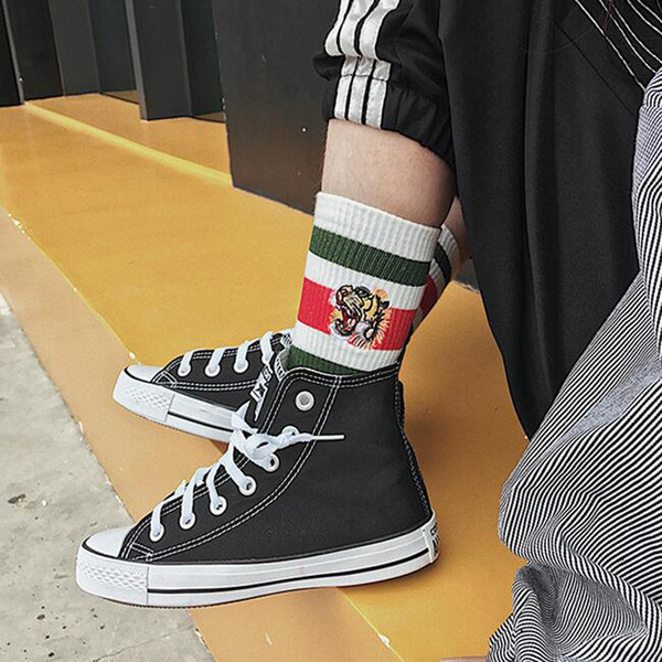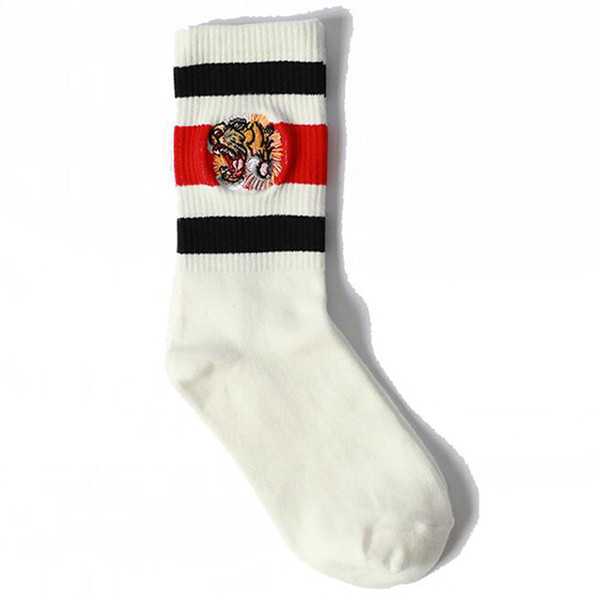 Tiger Embroideried Stockings Skateboard Socks For Men Fashion Brand Men's Sports Socking White Black Ankle Socks Outdoor Athletic Stockings