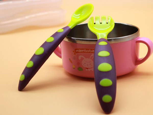 2pcs/lot Baby Spoon Fork Set Children Tableware Utensil Safety Flatware Infant Solid Feeding Flatware