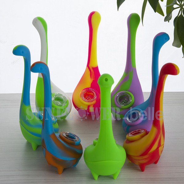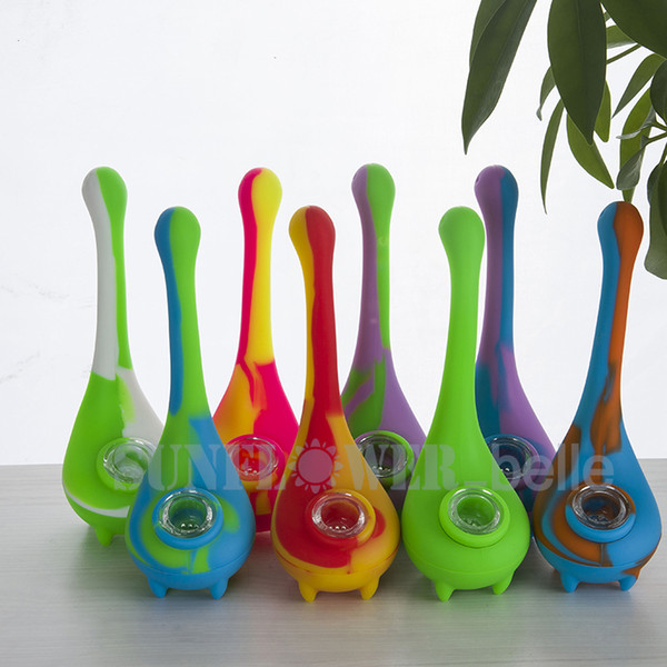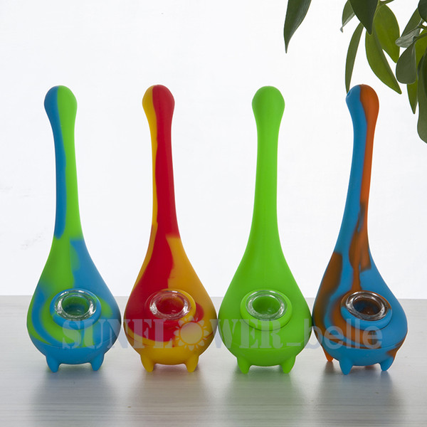 Water Monster silicon water pipe with galss bowl flexible smoking pipe good grade silicon free shipping--SRS481