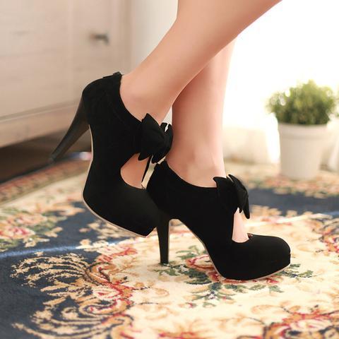2019 Hot Selling New Black Round Toe Bowtie Hollow Stiletto Heel Wedding Shoes High Quality Cheap Women's Boots CPA1113