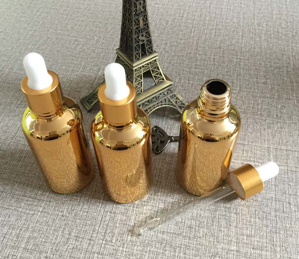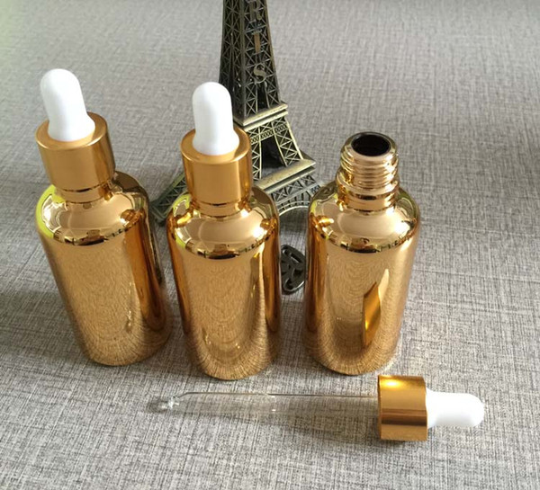 50pieces/lot 50ml High temperature gold plated dropper bottle, 50ml glass gold essentical oil bottle wholesale