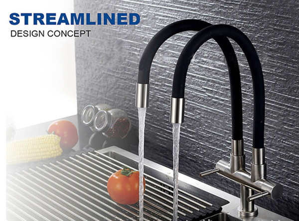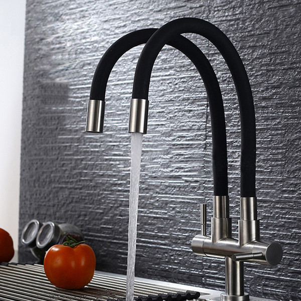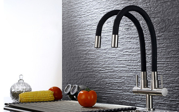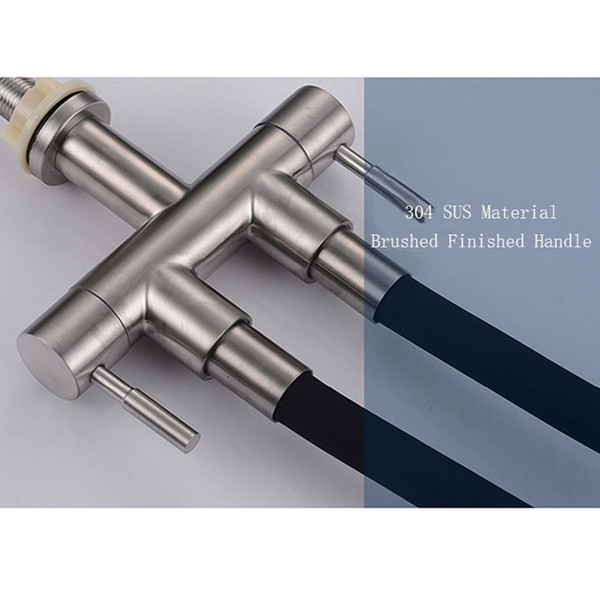 Kitchen Faucets Brushed Single Hole 2 Handles 720 Degree Rotation Cold Water Tap 2 Water Outlet Kitchen Sink Faucets 304 SUS