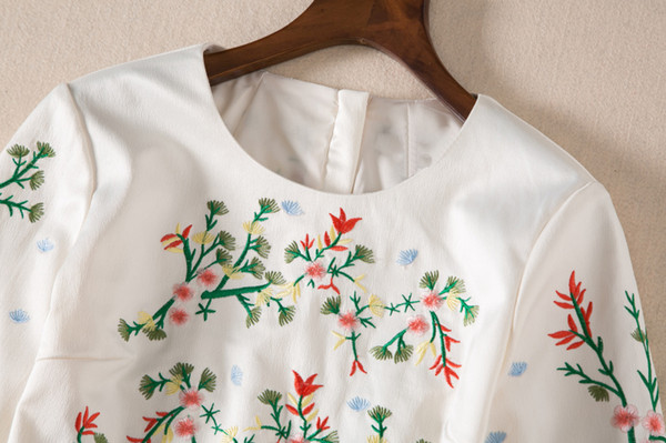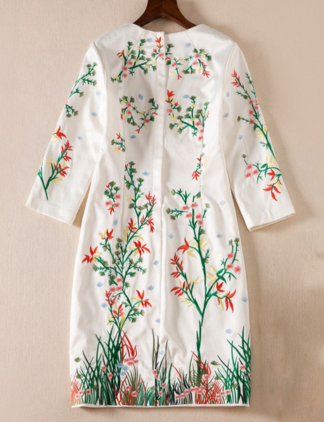 Luxury Women Embroidery Sheath Dress Round Neck 3/4 Sleeveless Dresses 05K818