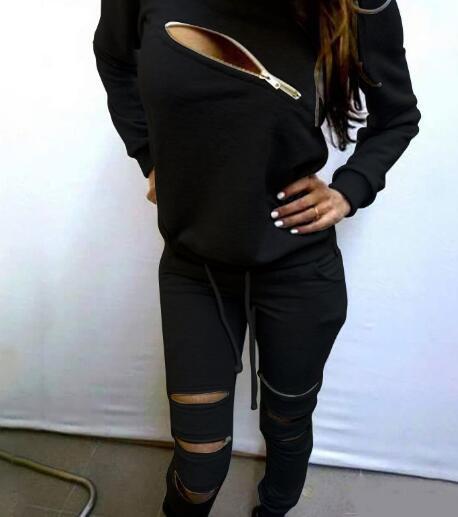 Fashion Zipper Hollow Out Women Tracksuits Sport Suit O-Neck Long sleeve Women Hoodies 2 Piece Set Jogging women clothing
