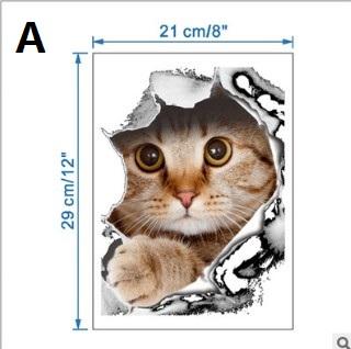 Cat Dog Vivid 3D Look Hole Wall Stickers Bathroom Toilet Decorations Kids Gift Kitchen Cute Home Decor Decal Mural Animal Poster 200pc wn399