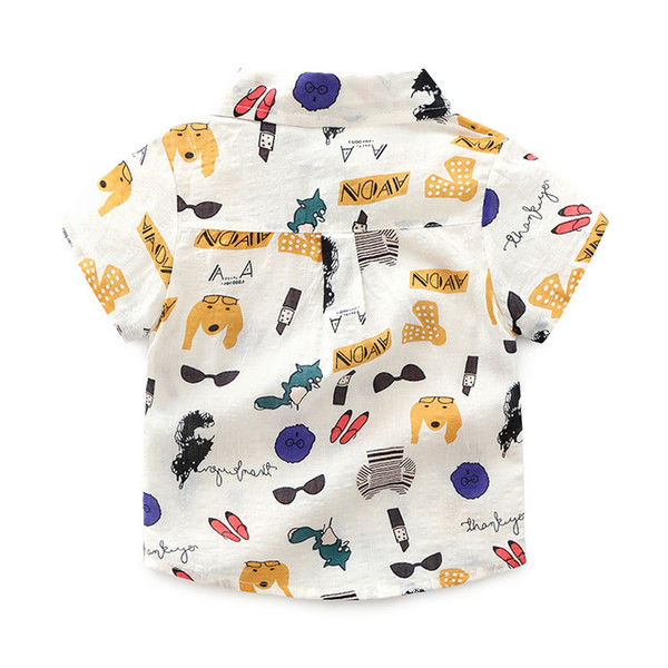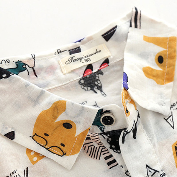 FOWECH Toddler Boys Shirts Summer Baby Suits Collar Cartoon Printed Kids Shirt for Infant Boy Cotton Sweet Baby Shirts For Boys