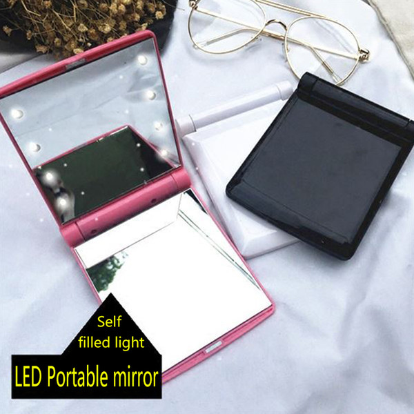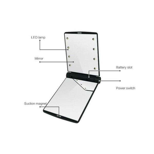 Desktop Portable 8 LED Light Mirror Compact lights Lighted Travel Make up Mirror