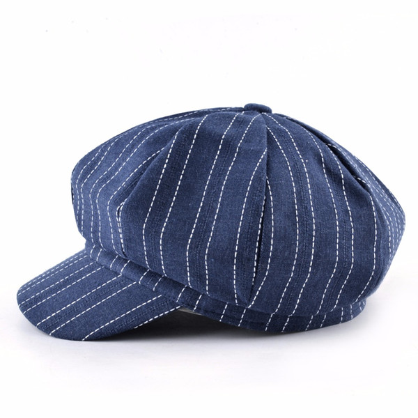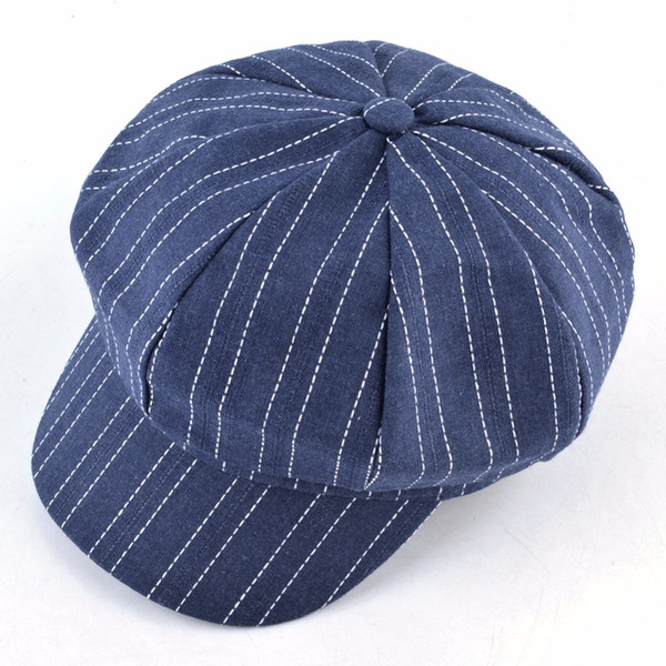 Newsboy Cap Women Striped Beret Hat Spring Autumn Flat Caps For Men Octagonal Hats England Artist Style Boina Painter Gorras
