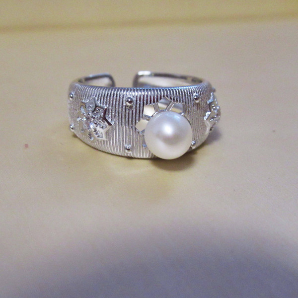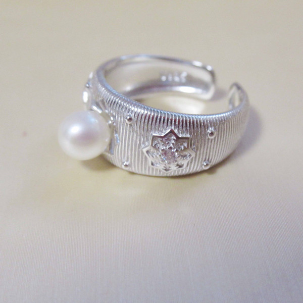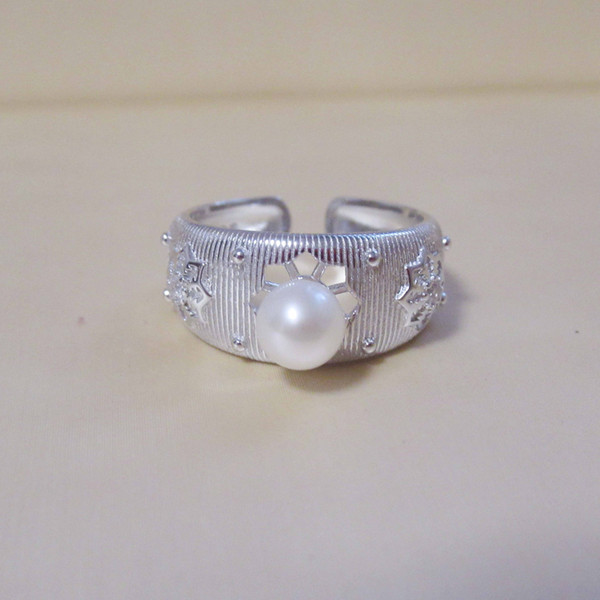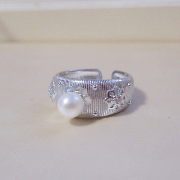 1 pc adjustable solid sterling silver ring with 6 mm round pearl,vintage banquet ring, thanks / wedding / anniversary gift