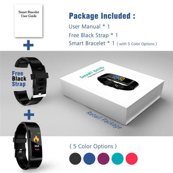 LCD Screen ID115 Plus Smart Bracelet Fitness Tracker Pedometer Watch Band Heart Rate Blood Pressure Monitor Smartwristband retail box