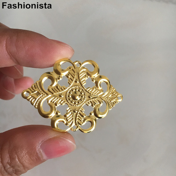 100 pcs 42*30mm Metal Filigree Flower Connectors,Gold-color,Silver-color,Bronze,Rhombus Scroll Flower Filigree Charm Connectors