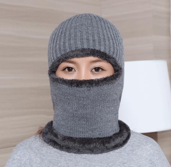 Autumn and winter knitted wool sleeve cap board masked couple hat plus velvet thickened male and female ear collar hat