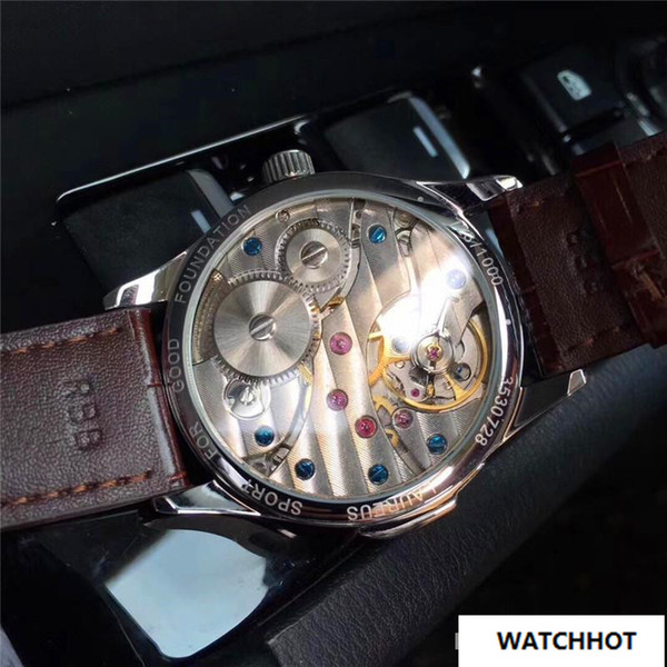 New 44mm Men's Watches Stainless Steel Wristwatches Leather Bands Blue Dial Waterproof Mechanical Hand-Winding Movement Fashion Watches I9