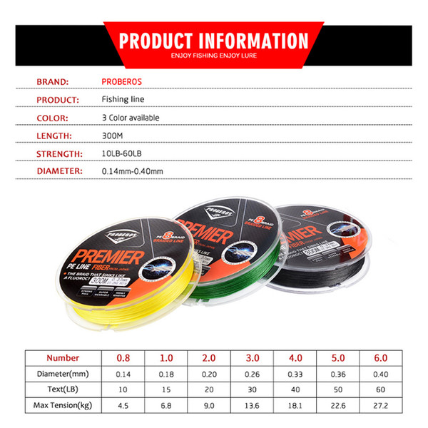 PRO BEROS 300M PE Braided Fishing Line 8 Strands Weaves 10LB 15LB 20LB 30LB 40LB 50LB 60LB Multifilament Fishing Line