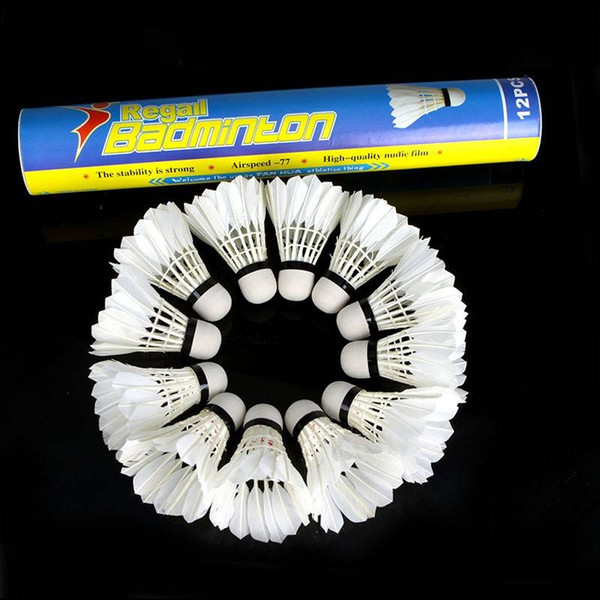 12Pcs Training White Teal Feather Badminton Shuttlecocks