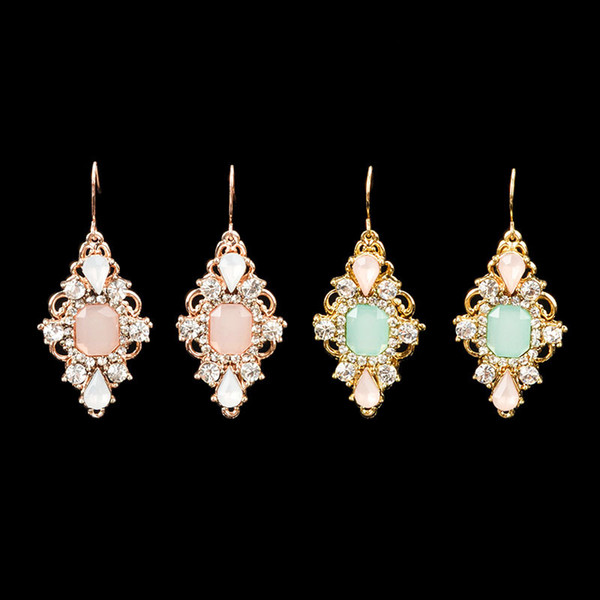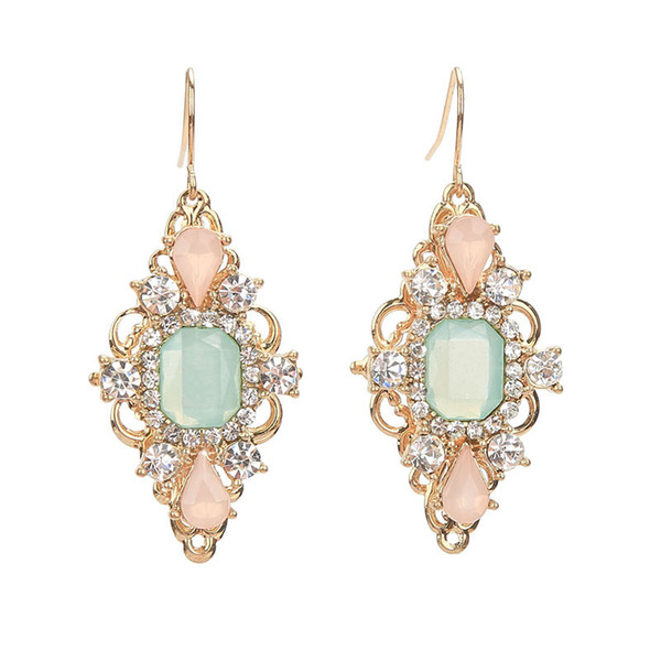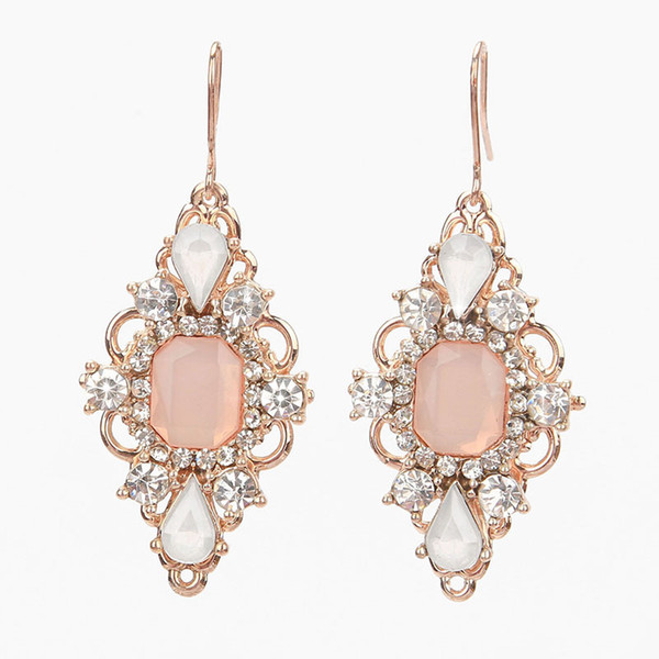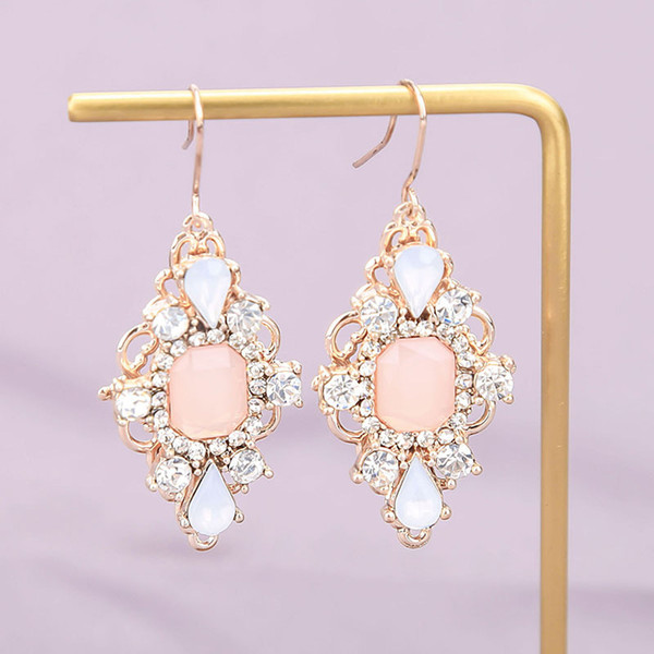 Cross-border Explosive Accessories Flower Moonstone Insert Drilled Earrings Euro-American Retro Hollow Ear Jewelry Diamond Carving Explosive