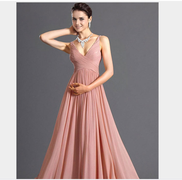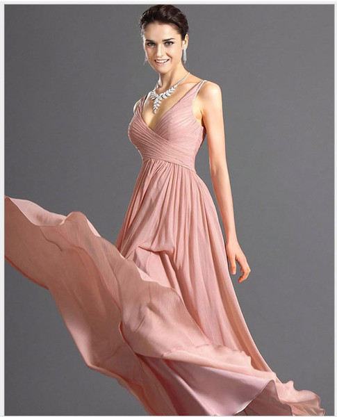 Mingli Tengda New Pink Chiffon Sleeveless Maxi Dress Deep V Open Back Bridesmaid Dress Folded Wedding Guest Dress Long Cheap Party Dresses