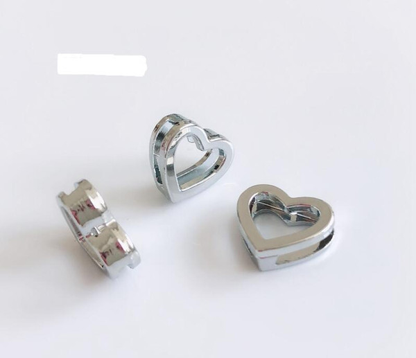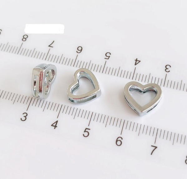 50pcs-100pcs DIY Accessory 8mm Inner Dia. 12MM*12MM Hollow Smoth Face Heart Slide Charm Bead DIY 8MM Dog Cat Collar Wristband