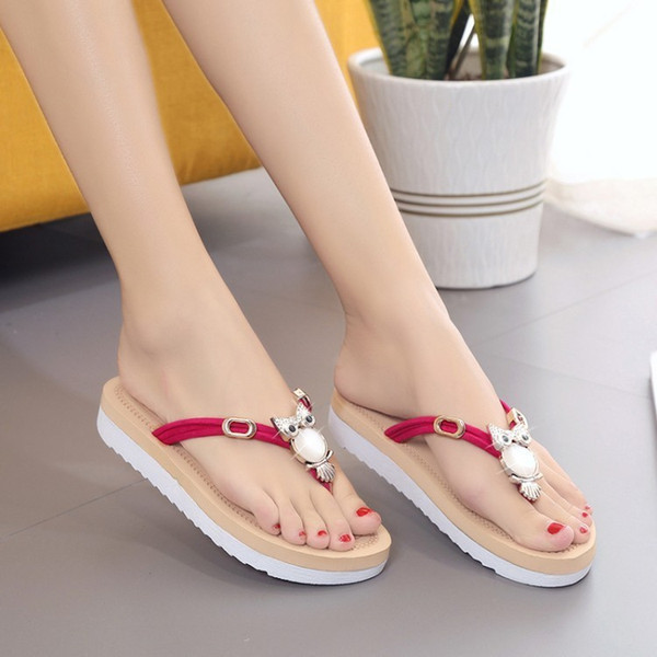 Breathable 2019 Summer Ladies Beach Sandals Flat Soft Bottom Slippers Cat Head Simple and Comfortable Sandals Womens Flip-flops