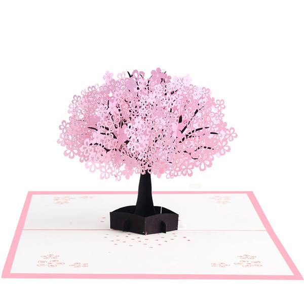 Oriental Cherry 3D Greeting Cards Elegant Romantic Birthday Stereoscopic Festival Anniversary Handmade