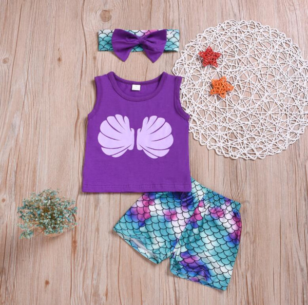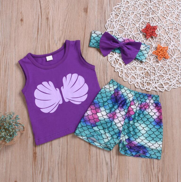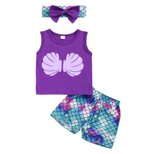 ins hot sales baby girls summer mermaid dress children boutique knit clothing set hot sale top matching shorts set