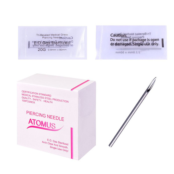 100pcs/lot 20G Piercing Needles 18G Sterile Disposable Body Piercing Needles 18G For Ear Nose Navel Nipple