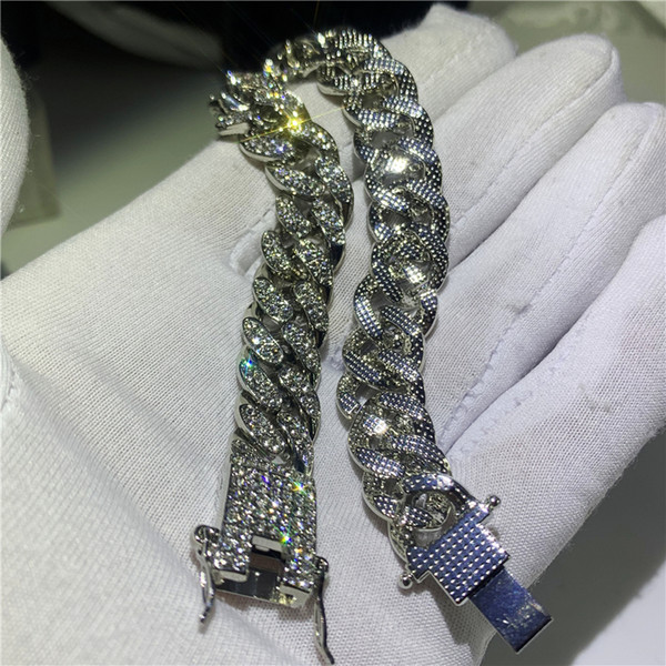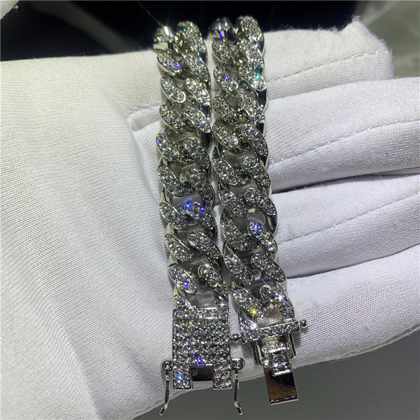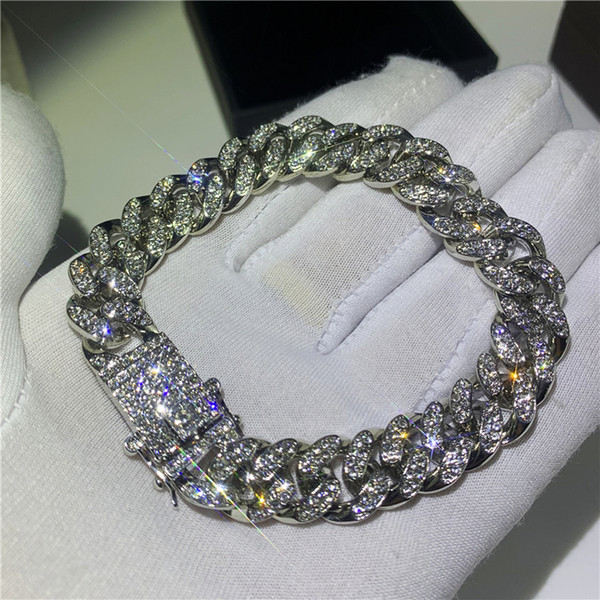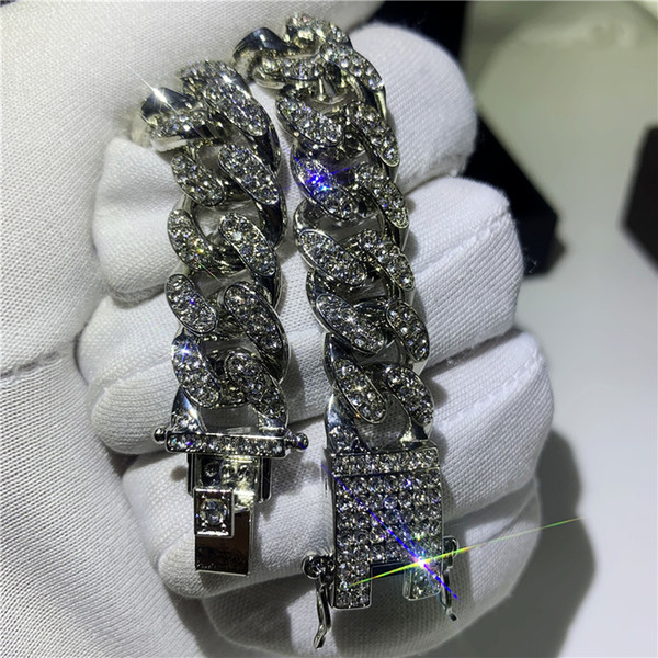 Vecalon Mens Fashion Iced Out Fashion Bracelets High Quality Gold Cuban Link Chain Miami Bracelet Hip Hop Jewelry
