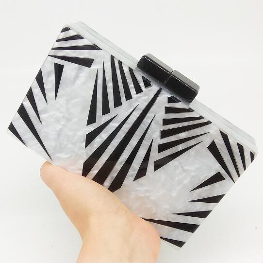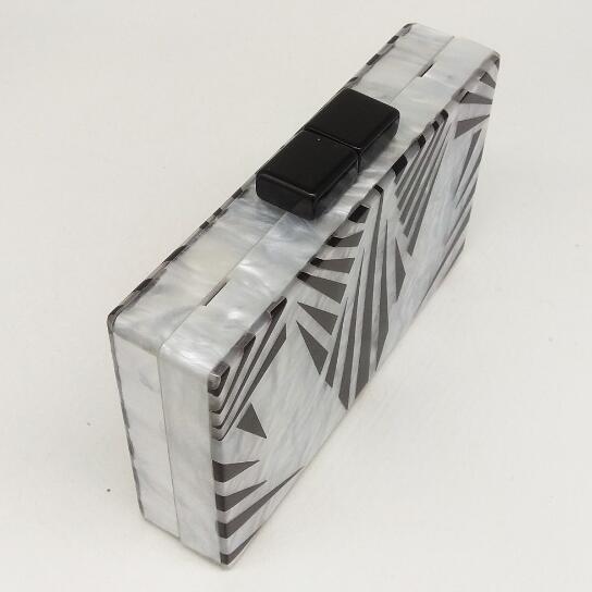 Geometric Print Women's Fashion Evening Bag Hardcase Acrylic Box Clutch Chain Shoulder & Crossbody Handbag Purse MIL1114