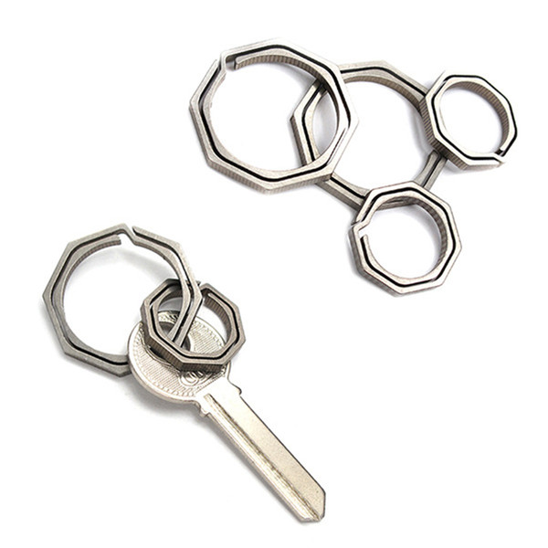 Business Key Holder Metal Gossip KeyRing Outdoor Titanium Alloy Key Holder CNC Machining Octagonal Keychain Quick-hang