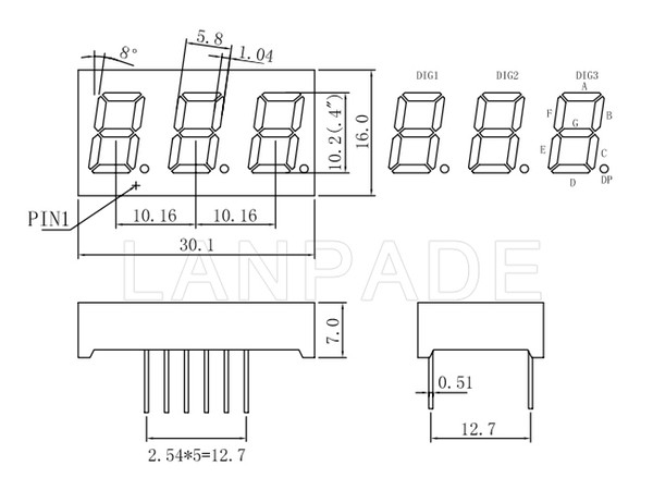 LED 7-Segment Display 0.40inch Three Digit White CC Free Shipping