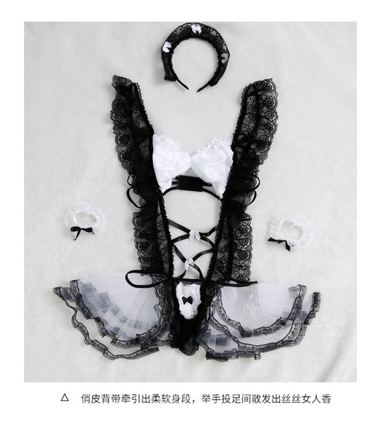 Erotic Lingerie Women Girl Black White New Fashion Sexy Cute Lace Mesh Bow Knot Uniform Show Stage Wear Cosplay Costumes Maid Set