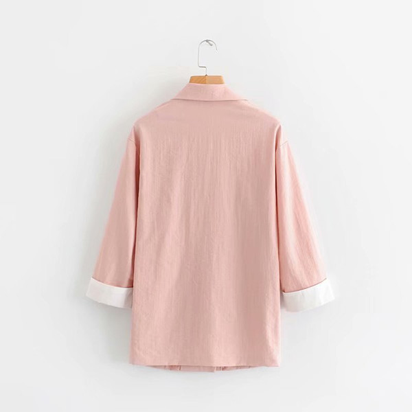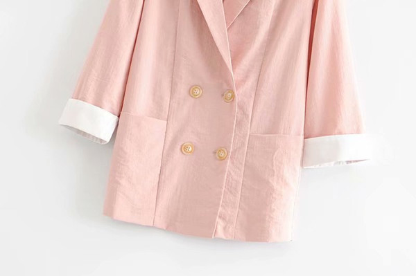Coat 2019 Spring Women Tops Colorblock Blazer Double-breasted Cuff Curling Loose Suit 6691