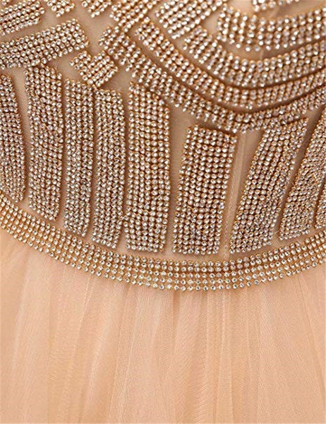 Tulle Crystal Beaded Prom Dresses Tiered Formal Evening Dresses Spaghetti Strap Ball Gown