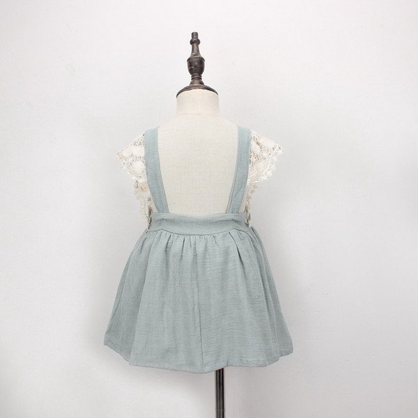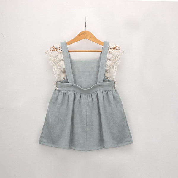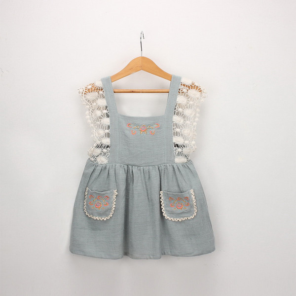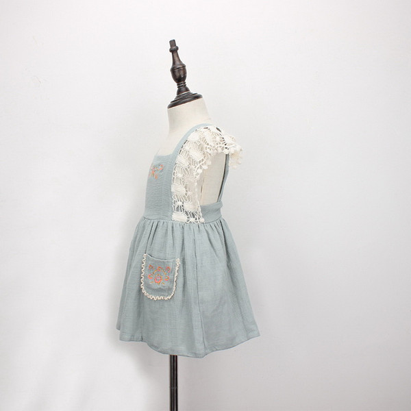 Wholesale Princess Dresses for Girls Embroidery Lace Vintage Summer Linen Suspender Dress for Holiday Children Clothing LT006