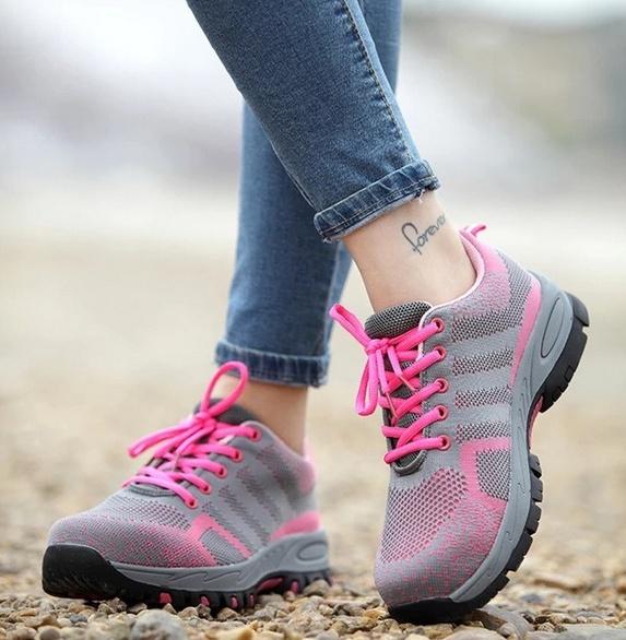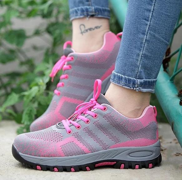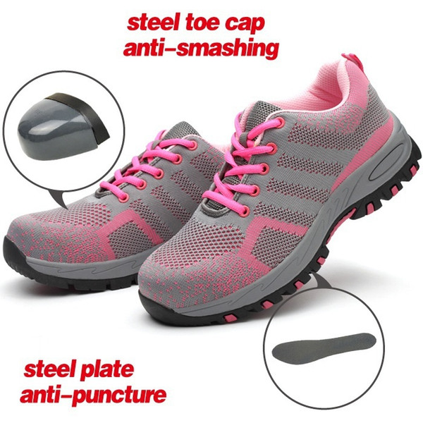 Women Durable Breathable Protective Shoes Breathable Air Mesh Steel Toe Caps Work Safety Shoes Anti-Smashing Puncture Proof Shoes