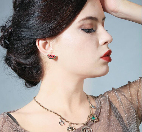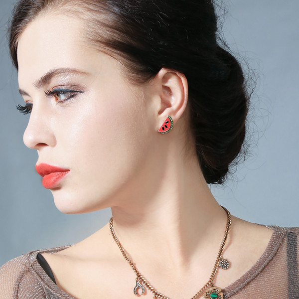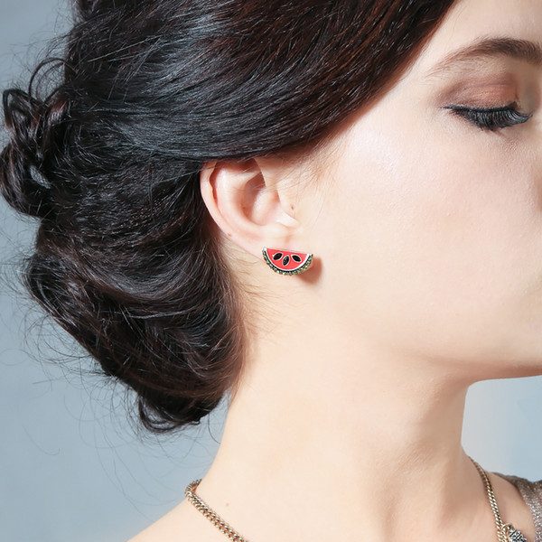 Vintage Fashion and Popular European and American Style Watermelon Shape Crystal Rhinestone Stud Earrings foe Women E5461