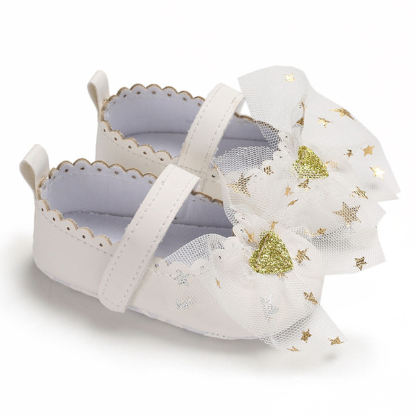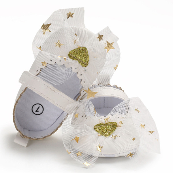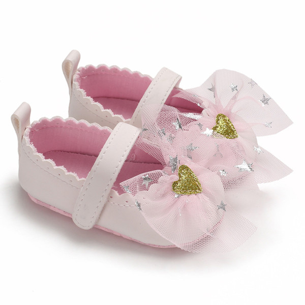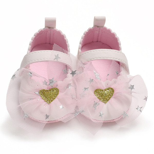 E&Bainel Baby Girl Shoes First Walker PU Leather Newborn Princess Girl Star Heart Shoes Mesh Infant Toddler Anti-slip Baby