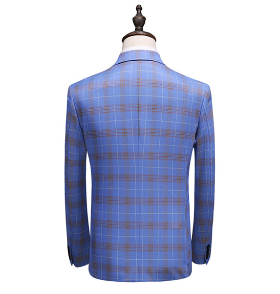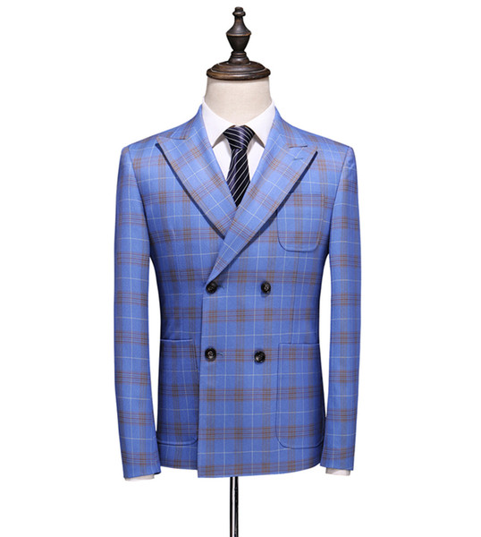 New Popular Blue Groom Tuxedos Slim Fit 3 Pieces Mens Wedding Suits Double Breasted Blazer Formal Men Business Suit (Jacket + Pants + Vest)